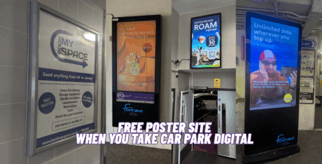 When you book space on our high-impact Car Park Digital Screens, we’ll give your campaign an extra boost with a FREE Poster Site for the same duration. All you’ll need to cover is the printing and fitting of the poster, and we’ll take care of the rest.